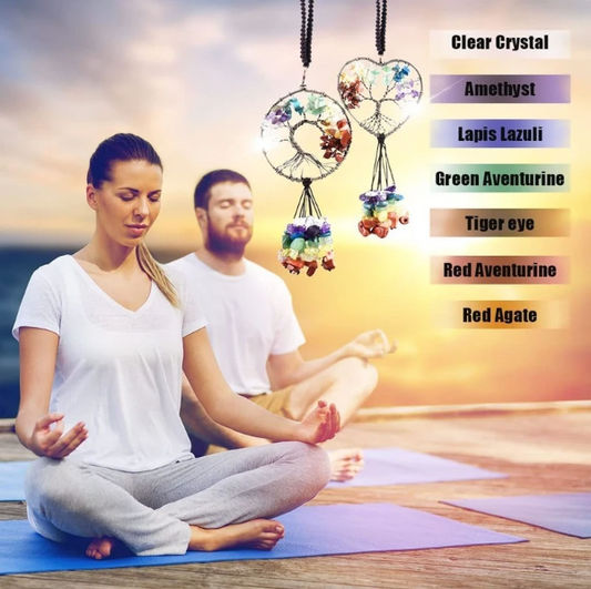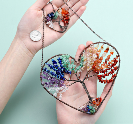 Tree of Life Car Mirror Hanging Seven Chakra Stones
